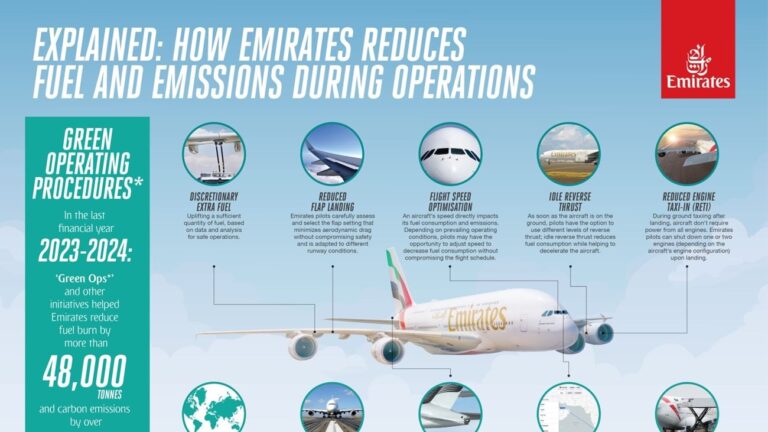 In a report released today titled ‘How Emirates pilots reduce fuel emissions during operations’, the airline highlighted its efforts, led by an internal cross-functional Operations Efficiency Steering Group, to mitigate unnecessary fuel burn and emissions wherever possible, while ensuring the highest safety standards embraced by Emirates are never compromised. In the last financial year 2023-2024, ‘Green Ops’ and other operating initiatives helped Emirates reduce fuel burn by more than 48,000 tonnes and carbon emissions by over 151,000 tonnes.