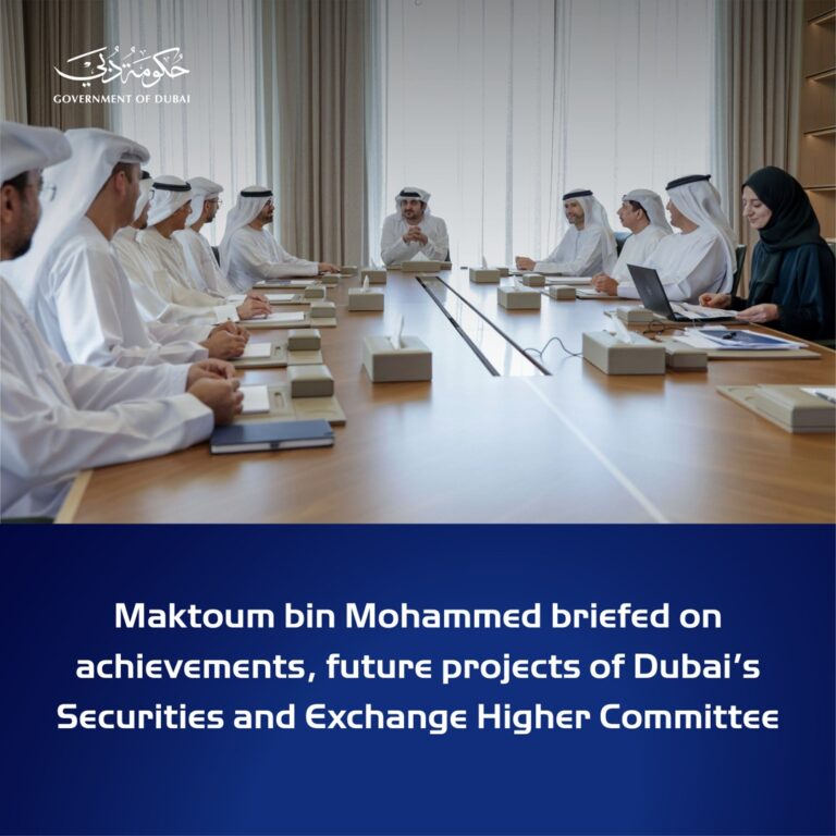 His Highness Sheikh Maktoum bin Mohammed bin Rashid Al Maktoum, First Deputy Ruler of Dubai, Deputy Prime Minister and Minister of Finance of the UAE and Chairman of the Dubai Securities and Exchange Higher Committee, chaired a meeting of the Committee. During the meeting, His Highness received a comprehensive briefing on the past achievements and upcoming key projects of the Committee.