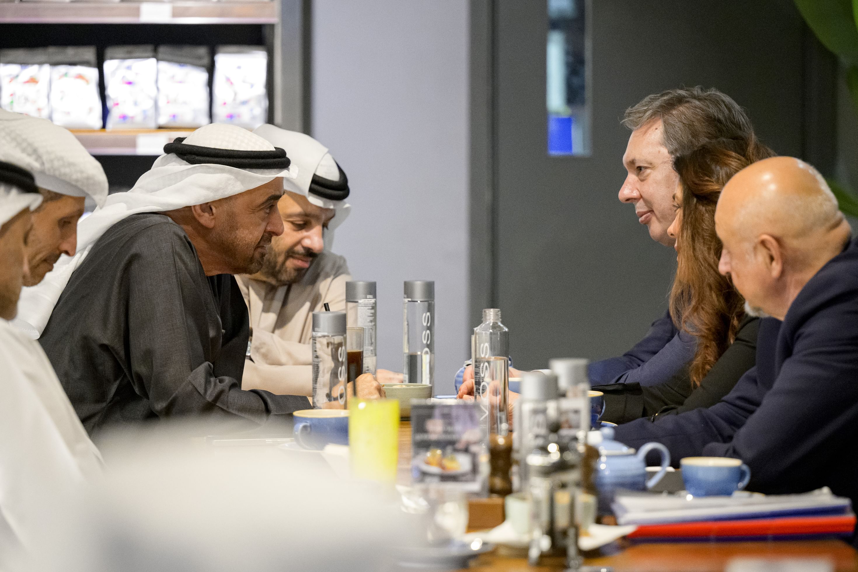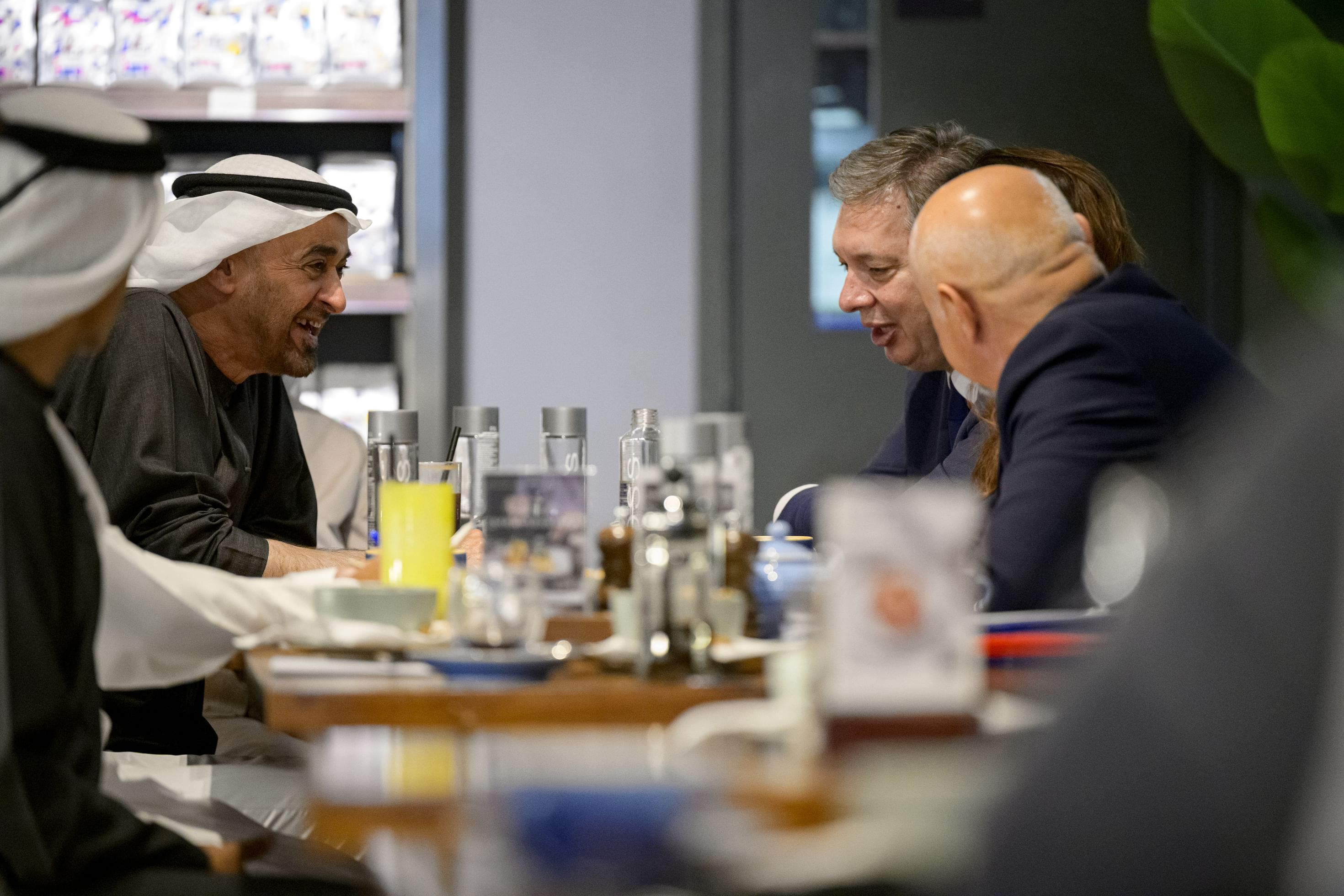 His Excellency Vučić arrived in the UAE earlier, where he was received by His Highness the UAE President, along with a number of Sheikhs, ministers, and senior officials.