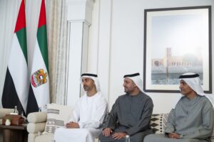 The meeting was attended by H.H. Sheikh Hamdan bin Mohamed bin Zayed Al Nahyan, Deputy Chairman of the Presidential Court for Special Affairs; Sheikh Mohamed bin Hamad bin Tahnoun, Advisor to the UAE President, and Ali bin Hammad Al Shamsi, Secretary-General of the Supreme Council for National Security.