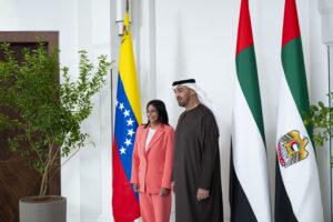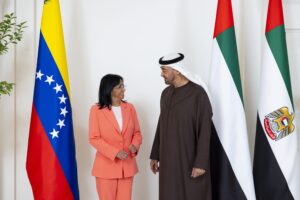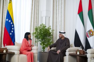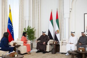 During the meeting, held at Qasr Al Shati in Abu Dhabi, Dr Delcy Rodríguez conveyed the greetings of His Excellency Nicolás Maduro, President of Venezuela, and his wishes for continued progress and prosperity for the UAE. In return, His Highness extended his greetings to the Venezuelan President, along with his wishes for further advancement for the Venezuelan people.